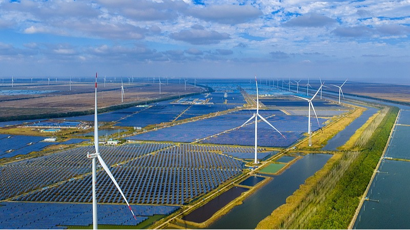 This photo, taken on October 22, 2025, shows corn being air-dried at Yuntai Farm in Haizhou District, Lianyungang City.