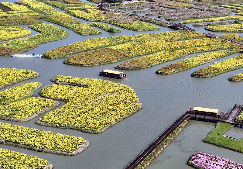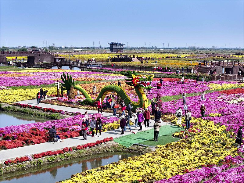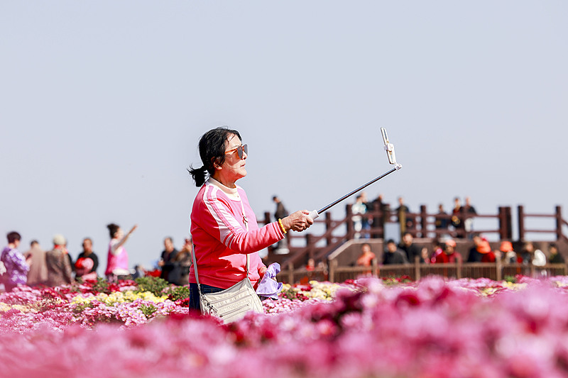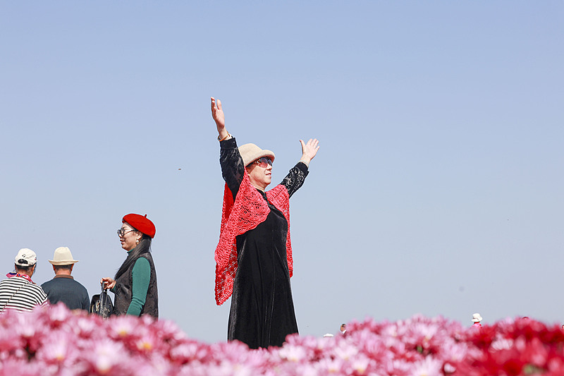 This photo, taken on October 28, 2025, shows visitors admiring chrysanthemums at Qianduo Scenic Area in Xinghua, Taizhou City. (CFP Photo)