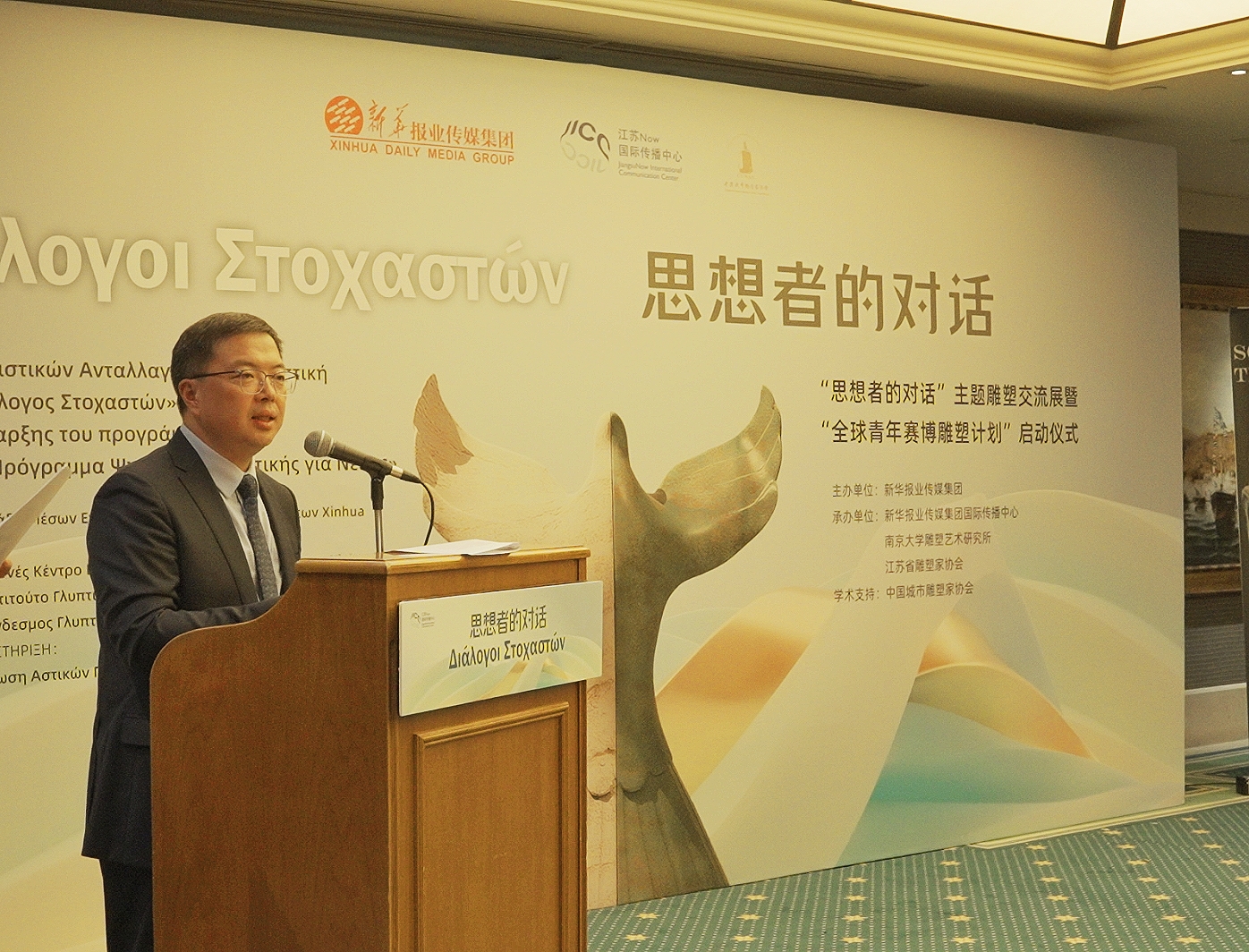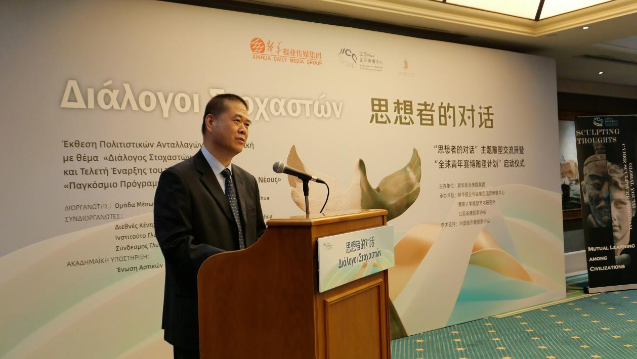 The opening ceremony hosted many distinguished guests. Among them were Gao Po, Deputy Editor-in-Chief of the Xinhua Daily Media Group; Shang Rong, Chairman of the Jiangsu Sculptors Association; Fu Licheng, Secretary-General of the association; Wang Peng, Editor-in-Chief of the China-Greece Times; Victoria Zygourou, Director of the Municipal Art Gallery of Athens; and Theodoros Panagiotou, Associate to the President of the City of Athens Culture, Sports and Youth Organization on Cultural Projects. It also included Christos Gikas, President of the Greek-Chinese Association of Cultural and Economic Relations, renowned sculptor and painter Mirsini Varthopoulou, Manolis Georgioudakis, Director of the Philatelic and Postal Museum, philosopher Ilias Tempelis and artist Ioannis Karapatakis. Also present were representatives of cultural and artistic communities from both China and Greece. Shen Zhengrong, Director of the JiangsuNow International Communication Center of the Xinhua Daily Media Group, presided over the event.