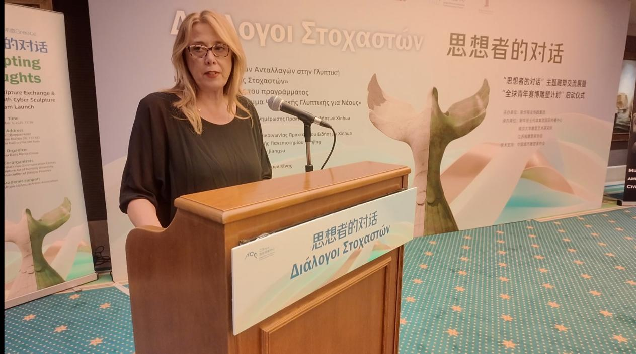 In her speech, Victoria Zygourou said that the sages of Greece and China laid the foundation for philosophical and art dialogue, which has continued through mutual appreciation, respect and creative collaboration. She added that the exhibition served as a bridge for cultural and spiritual exchange, transforming sculpture as a shared language — a symbol of dialogue and peaceful coexistence.
