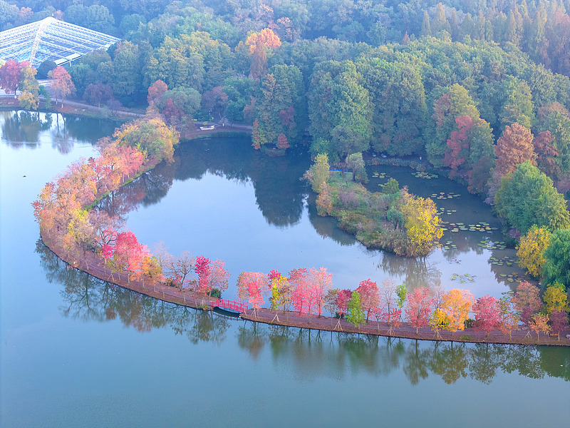 This photo, taken on November 10, 2025, shows the vibrant scene along the Crescent Bank at Zhongshan Botanical Garden in Nanjing. (Photo/CFP)