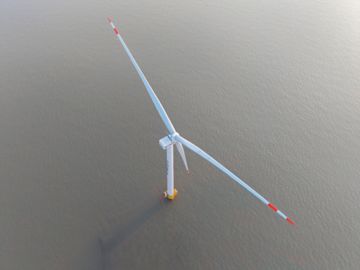 A new 13.6-megawatt offshore wind turbine has been commissioned and connected to the grid in Dafeng District of Yancheng City, marking the largest single-unit turbine currently in operation in Jiangsu Province.