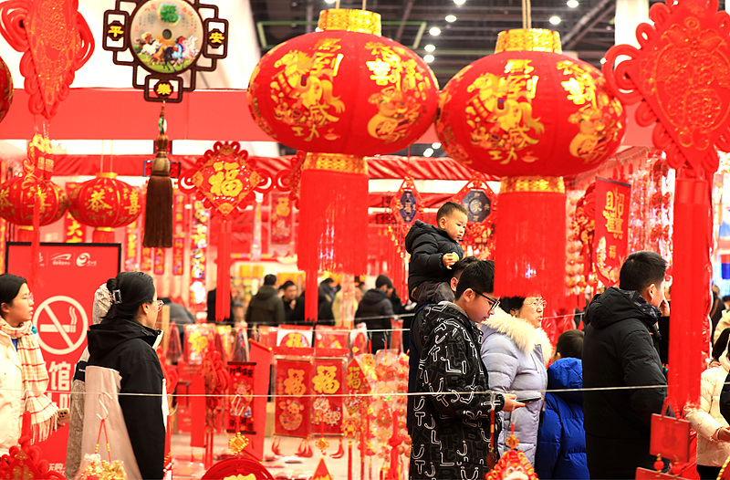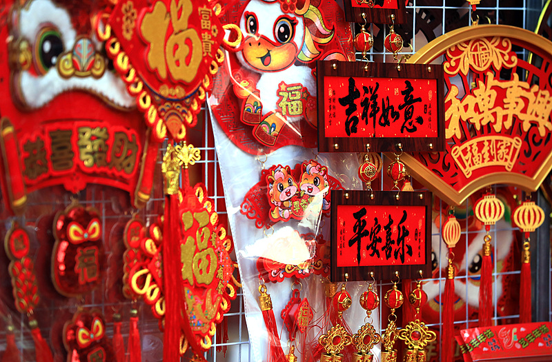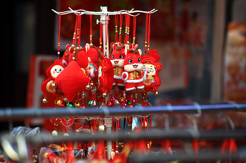 Photos taken on February 9 show citizens in Huai'an buying Spring Festival couplets, red lanterns, and horse-shaped ornaments to welcome the Chinese New Year. (Photo/CFP)