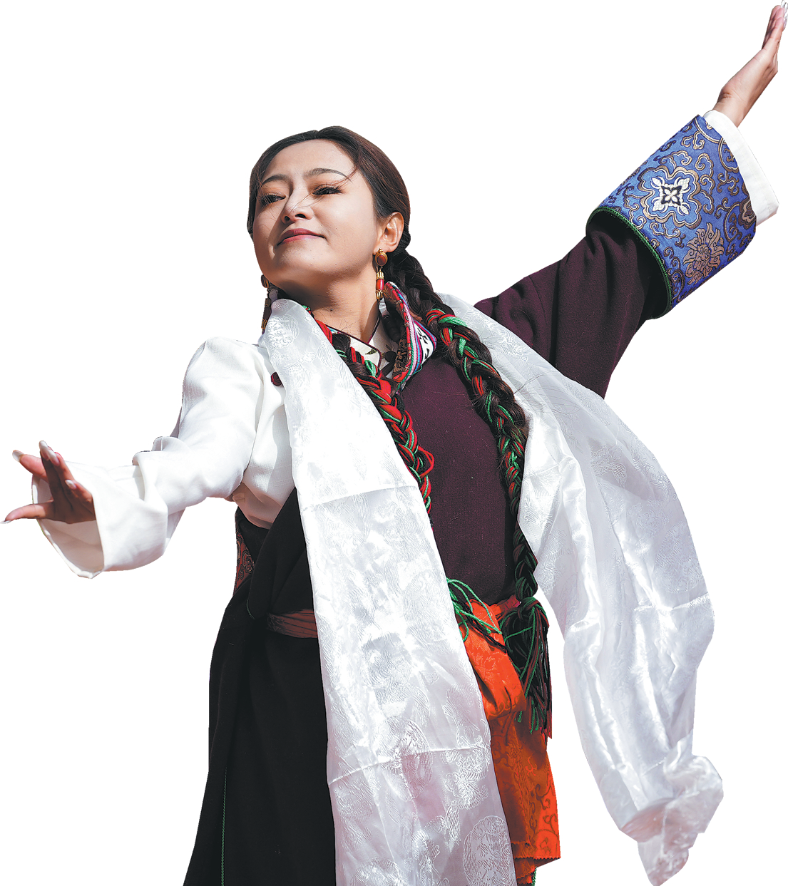 A performer leads the traditional Tibetan Guozhuang dance during a Lantern Festival show in Huangnan Tibetan autonomous prefecture in Qinghai province on March 3. ZHANG LONG/XINHUA