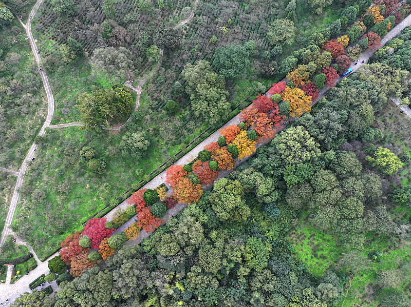 The Baohua Mountain Scenic Area in Jurong, Zhenjiang City is ablaze with autumn colors on October 26, 2025. (Photo/CFP)