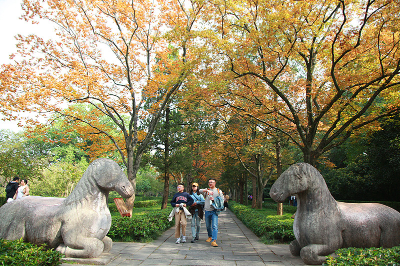 Visitors stroll along Shixiang Road at Xiaoling Mausoleum of the Ming Dynasty, October 26, 2025. (Photo/CFP)