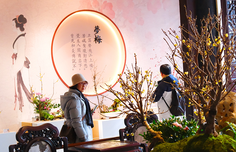 The 2026 Plum Blossom Exhibition is held in Lion Grove Garden of Suzhou, Jiangsu Province on January 7. More than 300 bonsai trees are now on display. (Photo/CFP)