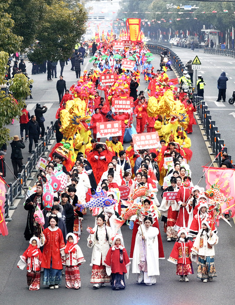 Xuyi, a county in Jiangsu Province renowned as the "crayfish capital of China”, hosted a grand parade with over 800 participants along its main Yingbin Road on February 11 to celebrate the Lantern Festival.