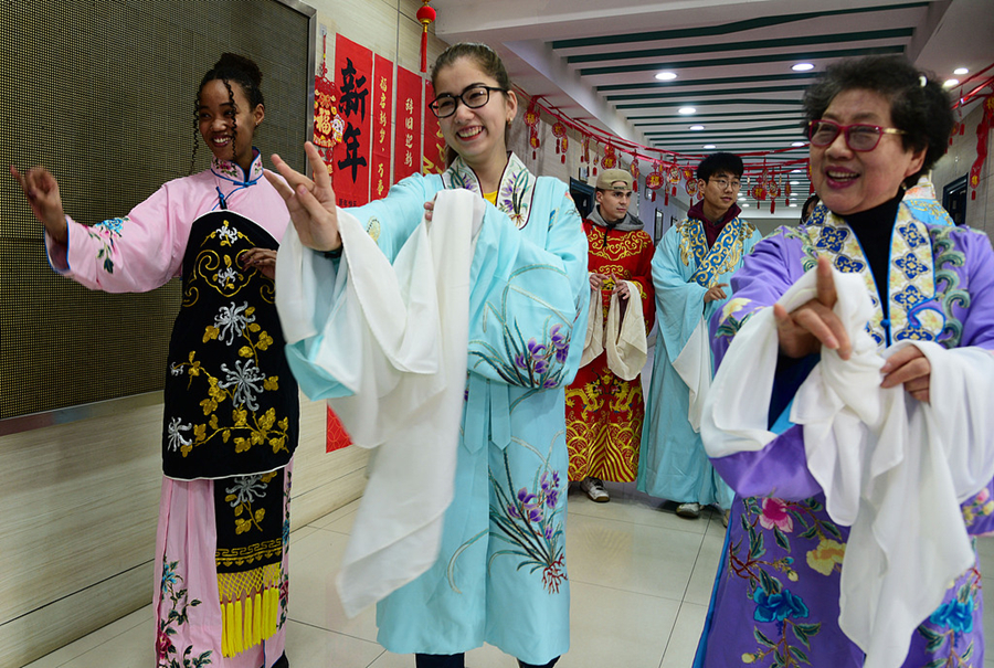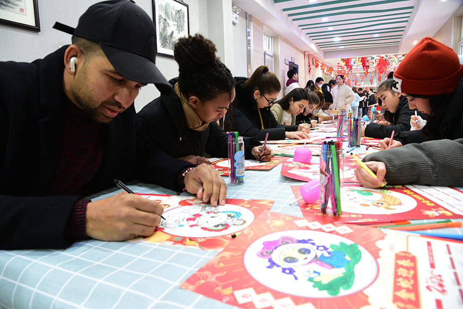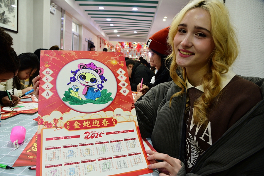 This photo, taken on January 21, 2025, shows international students from Jiangsu University participating in a workshop on Chinese cultural traditions in Zhenjiang City. (CFP)